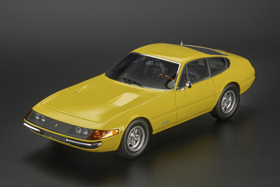The yellow exterior paint color of the Ferrari 365 Daytona GTB/4 is striking and eye-catching, making it a standout on the road. The black fine interior adds a touch of sophistication and luxury to the car's overall look.